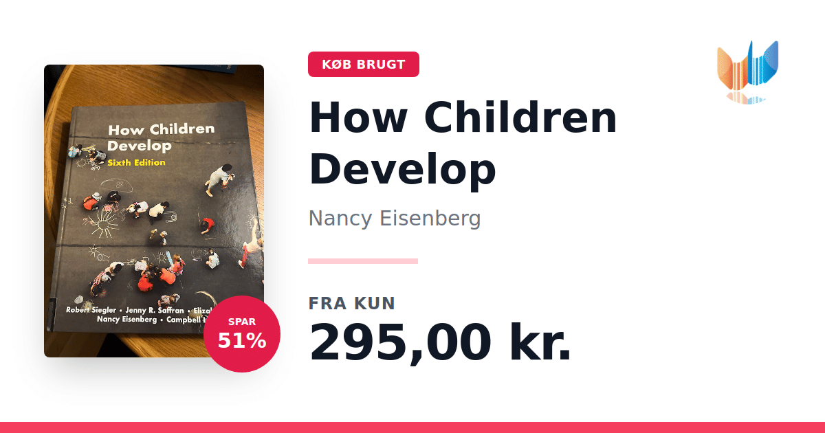 How Children Develop, 6. udgave (2019) udgivet af Macmillan Learning, er en topisk organiseret grundbog på 848 sider, som lærere og forskere stoler på til at få de nyeste perspektiver på børns og unges udvikling. Robert Siegler, Jenny Saffran, Elizabeth Gershoff, Nancy Eisenberg og Judy DeLoache - alle anerkendte forskere og undervisere - præsenterer centrale begreber og banebrydende opdagelser gennem en enestående integration af teori, kulturforskning og praktiske anvendelser. Teksten formidler komplekse emner med både autoritet og klarhed, så stoffet opleves som både troværdigt og umiddelbart anvendeligt for studerende og undervisere. Denne udgave indeholder desuden et omhyggeligt kurateret videoprogram i LaunchPad, integreret direkte i teksten for at supplere læsningen med levende eksempler.