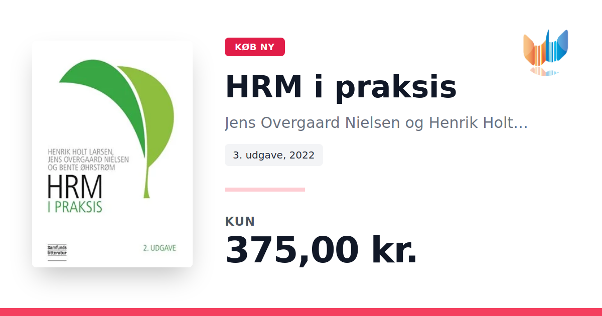 HRM i praksis giver et overskueligt overblik over HRM som både forskningsområde og praktisk disciplin. Bogen gennemgår centrale temaer såsom tiltrækning, udvikling, fastholdelse og afvikling af medarbejdere og sætter fokus på HRM's rolle som en strategisk ledelsesdisciplin. De centrale HRM-begreber og processer sættes ind i deres organisatoriske kontekst med vægt på de påvirkninger, som både virksomheden modtager fra og udsender til samfundet. Anden udgave af bogen er gennemgribende opdateret med henblik på den samfunds- og teknologiske udvikling de seneste år har medført. Den er udformet som grundbog til HRM-fagene på akademiuddannelserne samt HD(O)-studiet og er et oplagt pensumvalg for både grundfag og tilvalgsfaget Human Resources Management. Bogen henvender sig til ledere med personaleansvar samt til nuværende og kommende HR-professionelle, som ønsker en solid indføring i HRM-feltet.