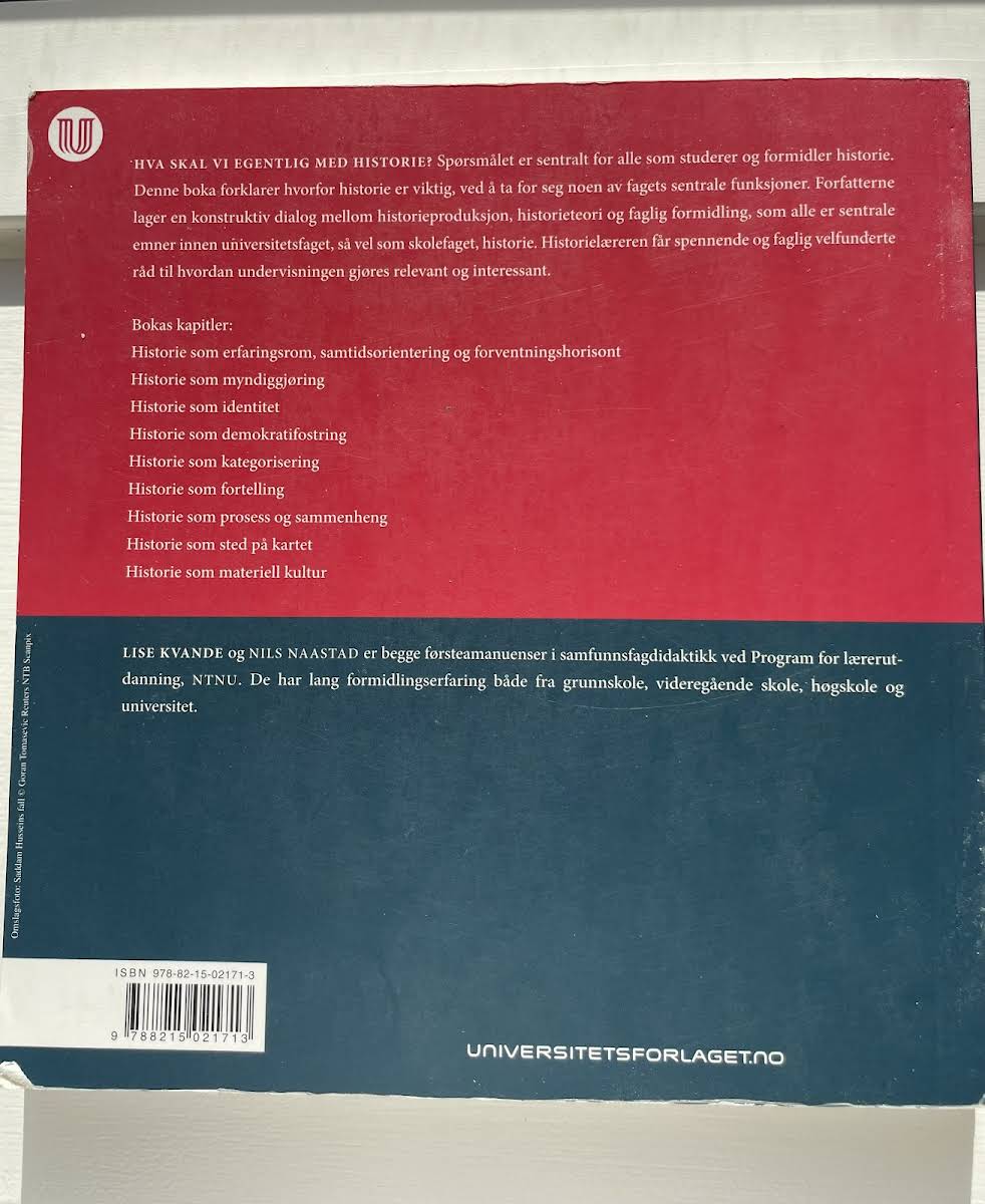 Hvor skal vi med historie? : historiedidaktikk i teori og praksis er en lærebok som setter søkelyset på hvordan historiefaget best kan formidles til elevene. Boken, skrevet av Lise Kvande og utgitt av Universitetsforlaget i 2013, undersøker sammenhengen mellom teoretiske perspektiver og praktisk undervisning. Med sine 276 sider tilbyr boken en nytenkende tilnærming til historiefaget, hvor teori og praksis veves tett sammen. Den henvender seg til alle som underviser i historie og ønsker å utvikle sine pedagogiske metoder med spennende, reflekterte perspektiver.