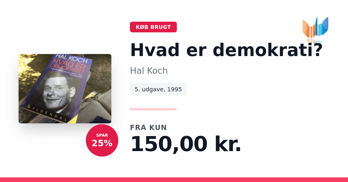 Lige nu kan du købe "Hvad er demokrati?" af Hal Koch til kun 150,00 kr. Du sparer hele 25% af nyprisen! Bogen du ser her er brugt, og i perfekt stand. Vi har i øjeblikket kun et enkelt eksemplar til salg af "Hvad er demokrati?", så slå til mens du kan!