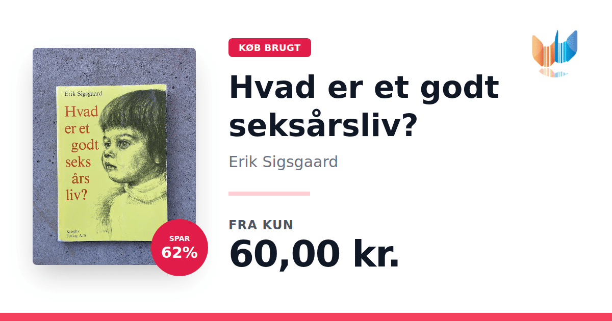 Lige nu kan du købe "Hvad er et godt seksårsliv?" af Erik Sigsgaard til kun 60,00 kr. Du sparer hele 62% af nyprisen! Bogen du ser her er brugt, og i god stand. Vi har i øjeblikket kun et enkelt eksemplar til salg af "Hvad er et godt seksårsliv?", så slå til mens du kan!