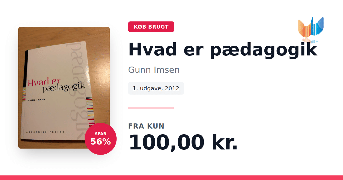 Lige nu kan du købe "Hvad er pædagogik" af Gunn Imsen til kun 100,00 kr. Du sparer hele 56% af nyprisen! Bogen du ser her er brugt, og i god stand. Vi har i øjeblikket kun et enkelt eksemplar til salg af "Hvad er pædagogik", så slå til mens du kan!