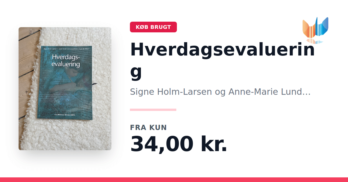 Lige nu kan du købe "Hverdagsevaluering" af Signe Holm-Larsen og Anne-Marie Lund Jørgensen til kun 40,00 kr. Bogen du ser her er brugt, og i perfekt stand. Vi har i øjeblikket 2 eksemplarer til salg af "Hverdagsevaluering", så husk at se de forskellige udgaver.