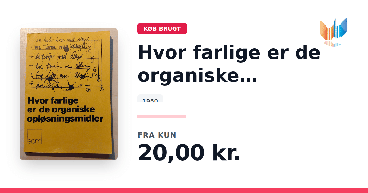 Lige nu kan du købe "Hvor farlige er de organiske opløsningsmidler?" til kun 20,00 kr. Bogen du ser her er brugt, og i perfekt stand. Vi har i øjeblikket kun et enkelt eksemplar til salg af "Hvor farlige er de organiske opløsningsmidler?", så slå til mens du kan!