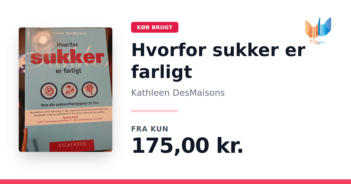Lige nu kan du købe "Hvorfor sukker er farligt" af Kathleen DesMaisons til kun 175,00 kr. Bogen du ser her er brugt, og i perfekt stand. Vi har i øjeblikket kun et enkelt eksemplar til salg af "Hvorfor sukker er farligt", så slå til mens du kan!