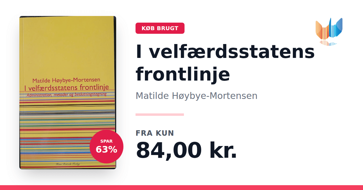 Lige nu kan du købe "I velfærdsstatens frontlinje" af Matilde Høybye-Mortensen til kun 84,00 kr. Du sparer hele 63% af nyprisen! Bogen du ser her er brugt, og i perfekt stand. Vi har i øjeblikket 3 eksemplarer til salg af "I velfærdsstatens frontlinje", så husk at se de forskellige udgaver.