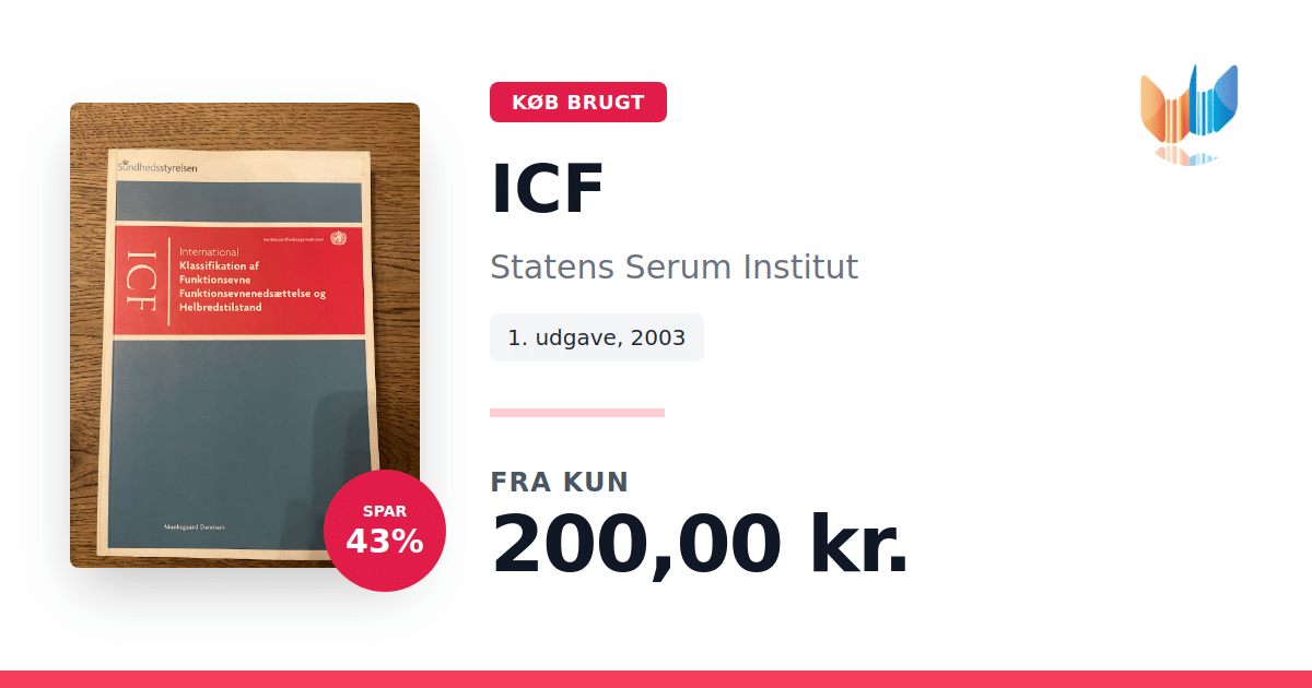 Lige nu kan du købe "ICF" af Statens Serum Institut til kun 200,00 kr. Du sparer hele 43% af nyprisen! Bogen du ser her er brugt, og i perfekt stand. Vi har i øjeblikket kun et enkelt eksemplar til salg af "ICF", så slå til mens du kan!