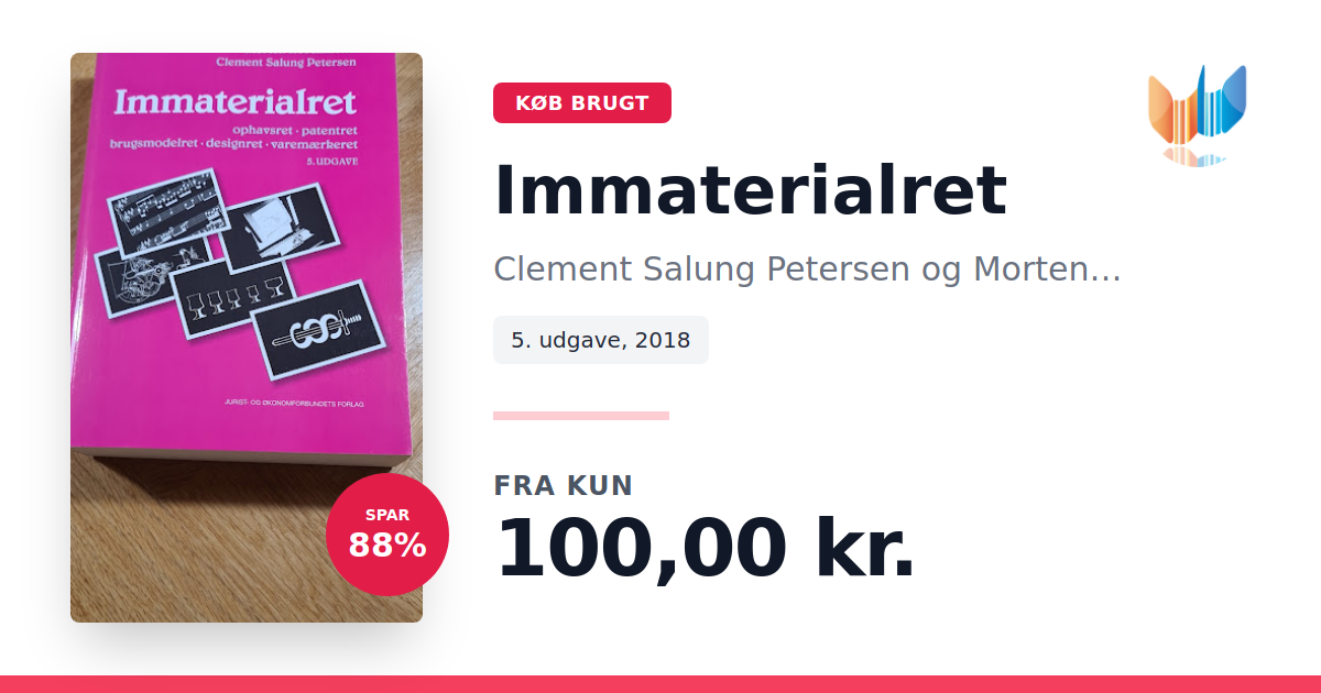 Lige nu kan du købe "Immaterialret" af Clement Salung Petersen og Morten Rosenmeier til kun 100,00 kr. Du sparer hele 88% af nyprisen! Bogen du ser her er brugt, og i perfekt stand. Vi har i øjeblikket kun et enkelt eksemplar til salg af "Immaterialret", så slå til mens du kan!