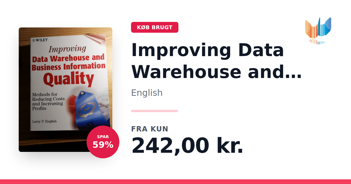 Lige nu kan du købe "Improving Data Warehouse and Business Information Quality" af English til kun 242,00 kr. Du sparer hele 59% af nyprisen! Bogen du ser her er brugt, og i perfekt stand. Vi har i øjeblikket kun et enkelt eksemplar til salg af "Improving Data Warehouse and Business Information Quality", så slå til mens du kan!