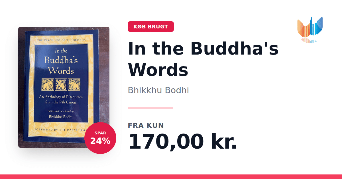 Lige nu kan du købe "In the Buddha's Words" af Bhikkhu Bodhi til kun 170,00 kr. Du sparer hele 24% af nyprisen! Bogen du ser her er brugt, og i perfekt stand. Vi har i øjeblikket kun et enkelt eksemplar til salg af "In the Buddha's Words", så slå til mens du kan!