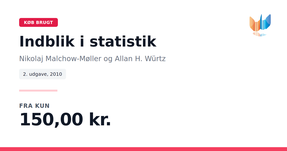 "Indblik i statistik" er en allround lærebog, der henvender sig til studerende på højere uddannelser inden for blandt andet økonomi, sociologi og samfundsvidenskab. Bogen dykker ned i de statistiske fordelinger og tilhørende hypotesetest, som er centrale for disse fagområder. Med sit praktiske fokus tilbyder bogen en systematisk gennemgang af alle trin – fra valg af stikprøver og dataindsamling til bearbejdning og fortolkning af data. Hvert kapitel illustreres med relevante eksempler og afsluttes med øvelsesopgaver, der understøtter den teoretiske forståelse. Desuden indeholder bogen konkrete anvisninger til brug af Excel-regneark, der hjælper med at løse praktiske statistiske problemstillinger.