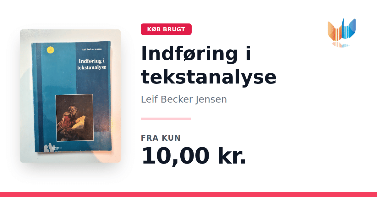 Lige nu kan du købe "Indføring i tekstanalyse" af Leif Becker Jensen til kun 10,00 kr. Bogen du ser her er brugt, og i god stand. Vi har i øjeblikket 2 eksemplarer til salg af "Indføring i tekstanalyse", så husk at se de forskellige udgaver.