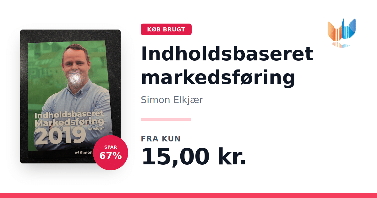Lige nu kan du købe "Indholdsbaseret markedsføring" af Simon Elkjær til kun 15,00 kr. Du sparer hele 67% af nyprisen! Bogen du ser her er brugt, og i perfekt stand. Vi har i øjeblikket kun et enkelt eksemplar til salg af "Indholdsbaseret markedsføring", så slå til mens du kan!