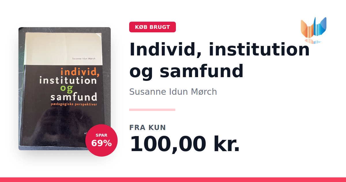 Lige nu kan du købe "Individ, institution og samfund" af Susanne Idun Mørch til kun 100,00 kr. Du sparer hele 69% af nyprisen! Bogen du ser her er brugt, og i god stand. Vi har i øjeblikket kun et enkelt eksemplar til salg af "Individ, institution og samfund", så slå til mens du kan!