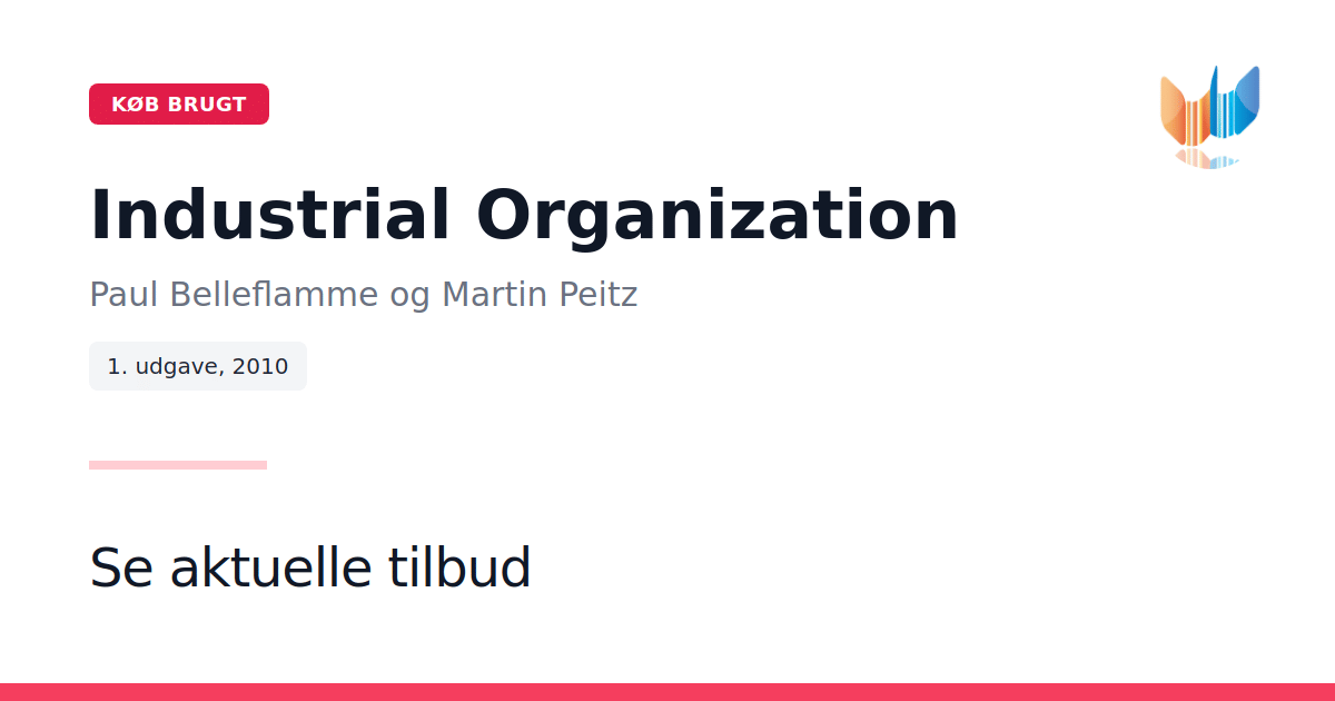 Industrial Organization: Markets and Strategies af Paul Belleflamme og Martin Peitz, udgivet af Cambridge University Press i 2010, giver en aktuel gennemgang af moderne industristruktur og virksomhedsstrategier. Bogen kombinerer teoretiske modeller med konkrete eksempler fra erhvervslivet og henvender sig både til studerende og undervisere inden for industriøkonomi. Du bliver ført gennem de mest centrale modeller for, hvordan virksomheder med markedsmagt fastlægger deres strategier, og hvordan de tilpasser sig forskellige konkurrence- og reguleringsmiljøer. Emner som produktbundling, branding, vertikale forsyningsrelationer, immaterielle rettigheder og tosidede markeder behandles indgående. Modellerne præsenteres detaljeret, og hovedresultaterne samles i klare ‘lessons’, der gør det nemt at se, hvilke indsigter man kan anvende i praksis. Hvert kapitel understøttes af realistiske cases, som illustrerer teorien i konkrete organisatoriske situationer. Bogen i paperbackudgave på 720 sider er desuden ledsaget af et tilhørende webunivers med ekstra ressourcer til undervisere og studerende, herunder øvelser, facitlister, case-materiale og præsentationer.