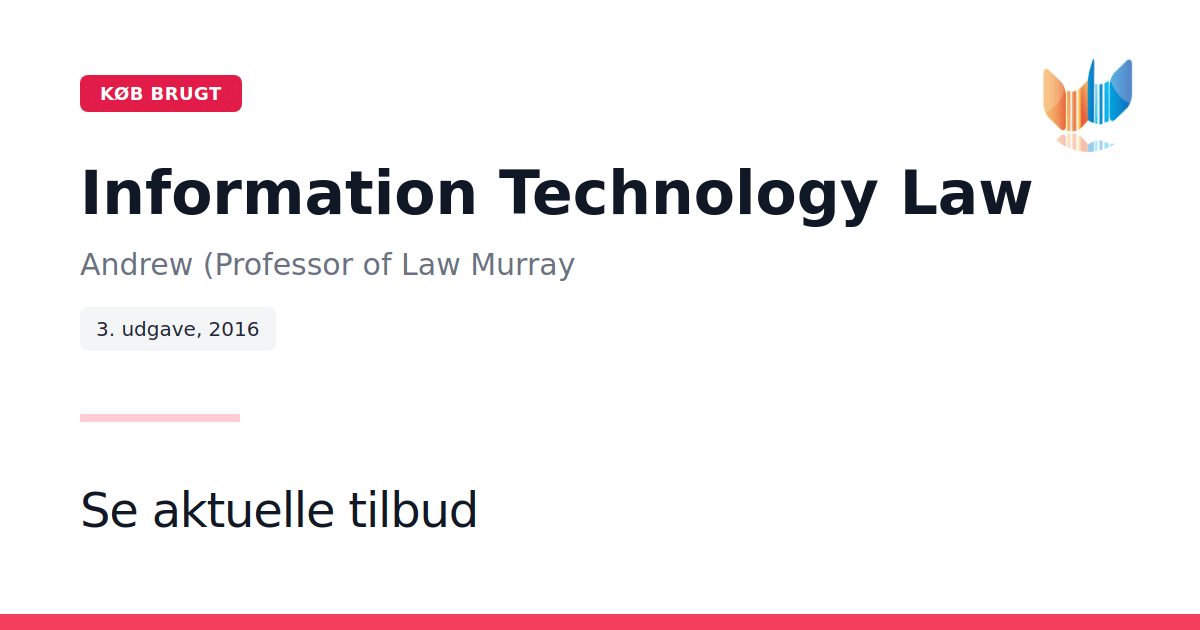 Information Technology Law: The Law and Society er et uundværligt studie- og undervisningsværktøj for alle, der ønsker at forstå IT-ret og de juridiske mekanismer i det moderne informationssamfund. Med klarhed og grundighed kortlægger Andrew Murray, hvordan den hastige digitalisering udfordrer og forandrer gængse retsprincipper. Bogen indledes med en præcis introduktion til begrebet informationssamfund og mulige reguleringsformer. Derpå følger nøje opdelte afsnit om internetstyring, privatlivsbeskyttelse og overvågning, intellektuelle ejendomsrettigheder samt digitale kommercielle transaktioner. Hvert afsnit guider læseren fra de grundlæggende rammer til de mere komplekse problemstillinger i en sammenhængende struktur. Endvidere er værket understøttet af et omfattende udvalg af online ressourcer, herunder ekstra kapitler om virtuelle miljøer, podcasts til repetition, ajourføringer af lovgivning, et glosar med nøglebegreber samt vejledende svar på opgaver ved kapitlerne.