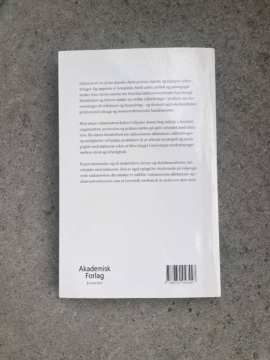 "Inklusion. Dilemmaer i organisation, profession og praksis" tilbyder en dybdegående undersøgelse af de sammenflettede udfordringer, der opstår, når inklusion skal realiseres i praksis. Med aktørnetværksteori som teoretisk værktøj udforskes, hvordan organisatoriske strukturer og pædagogiske tilgange påvirker både idealerne om inklusion og de virkelige praksisser i skolesektoren. Bogen henvender sig til skoleledere, lærere og pædagogiske konsulenter, der ønsker et nuanceret indblik i inklusionens mange dilemmaer. Den er desuden et værdifuldt redskab for studerende, som ønsker at forstå de historiske og administrative rammer, der understøtter inklusionsarbejdet, og som samtidig søger praktiske strategier til at navigere i de komplekse krav, der stilles til moderne uddannelsesinstitutioner.