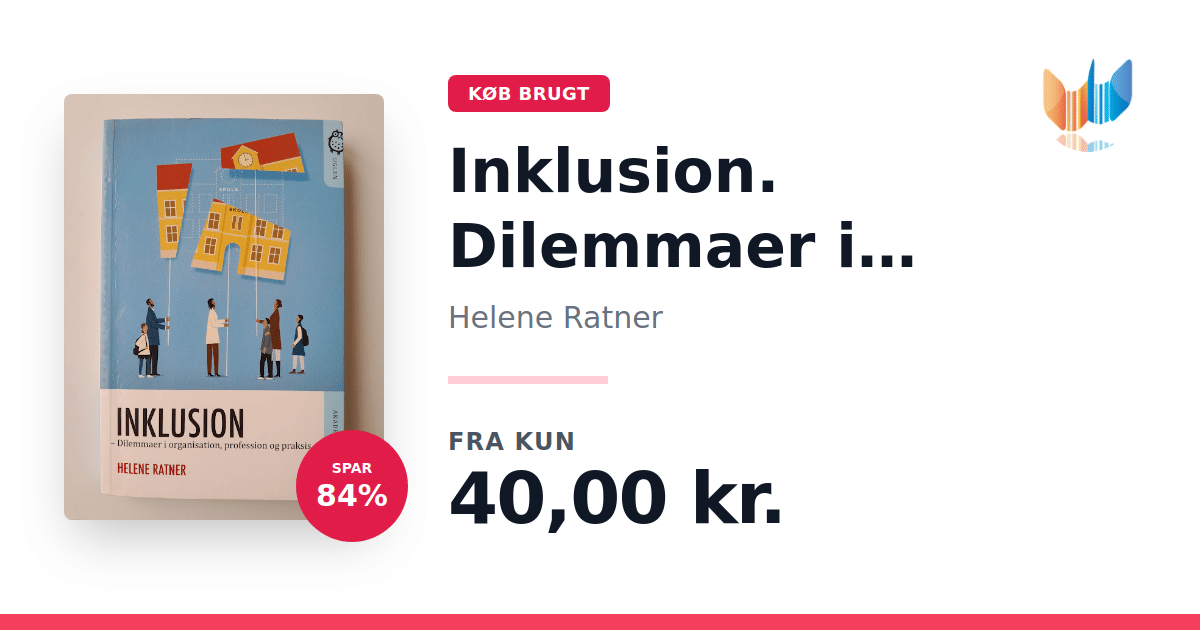Lige nu kan du købe "Inklusion. Dilemmaer i organisation, profession og praksis" af Helene Ratner til kun 40,00 kr. Du sparer hele 84% af nyprisen! Bogen du ser her er brugt, og i god stand. Vi har i øjeblikket 2 eksemplarer til salg af "Inklusion. Dilemmaer i organisation, profession og praksis", så husk at se de forskellige udgaver.