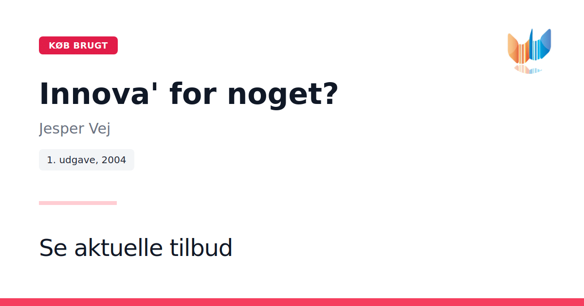 "Innova' for noget?" præsenterer en klar og praksisorienteret tilgang til innovation, hvor Jesper Vej omsætter aktuel teori til konkrete handlingsmodeller. Bogen udfordrer de traditionelle synspunkter ved at demonstrere, hvordan man kommer videre fra snakken om innovation til at implementere den i praksis. Med et solidt fundament i de inddragede innovationsteorier, er bogen særligt velegnet til fag som Projektinnovation og Innovative processer på Akademiuddannelserne. Den kan dog ligeledes bruges på andre studieretninger og af praktikere, der ønsker en mere systematisk tilgang til innovationsarbejdet. Udgivet af Academica i 2004 og med en overskuelig længde på 92 sider, tilbyder "Innova' for noget?" en lettilgængelig, praktisk guide til både studerende og professionelle, der sætter en ære i at omsætte teori til handling.