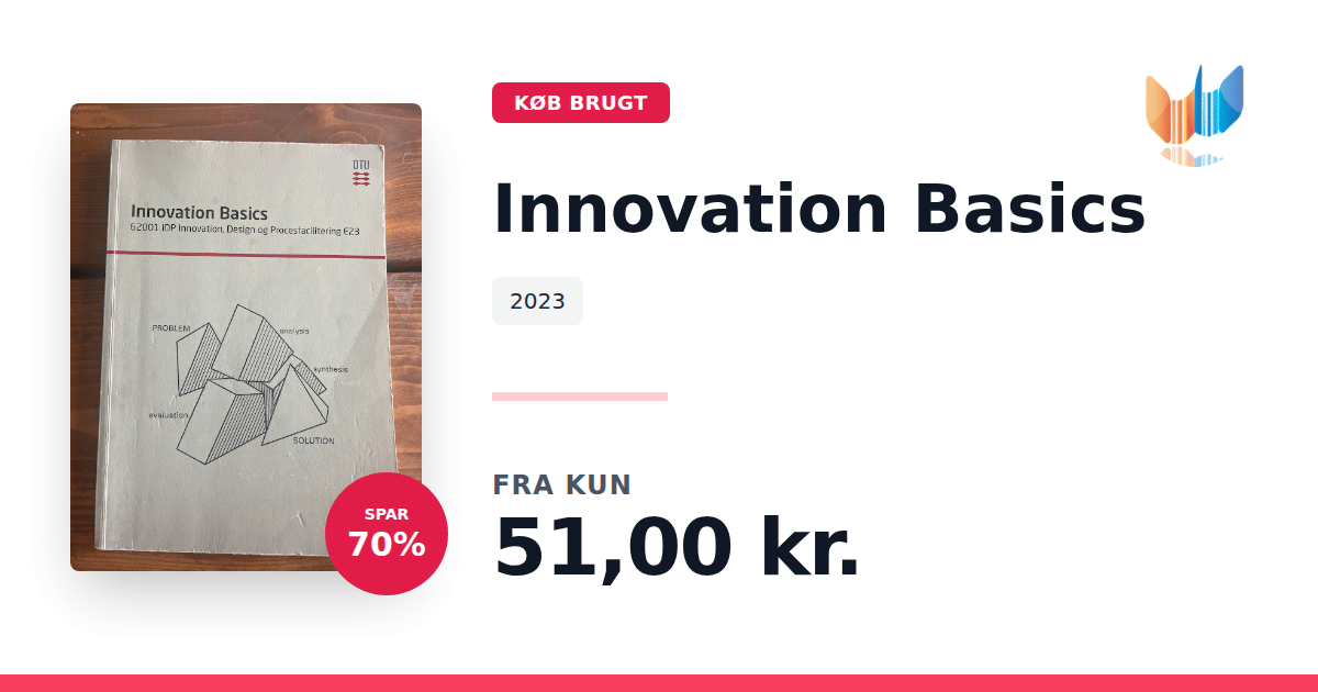 Lige nu kan du købe "Innovation Basics" til kun 51,00 kr. Du sparer hele 70% af nyprisen! Bogen du ser her er brugt, og i god stand. Vi har i øjeblikket kun et enkelt eksemplar til salg af "Innovation Basics", så slå til mens du kan!