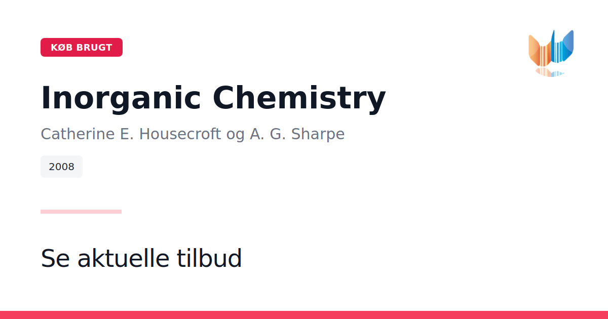 Inorganic Chemistry er en engelsksproget lærebog på 1.140 sider, udgivet af Pearson Education i 2008 som paperback. Den er udviklet særligt til studerende og præsenterer de grundlæggende principper i uorganisk kemi på en moderne og relevant måde. Med klar struktur og detaljerede forklaringer hjælper den læseren med at opnå en dybdegående forståelse af faget. Forfatterne Catherine E. Housecroft og A. G. Sharpe kombinerer faglig ekspertise med pædagogisk indsigt og leverer et gennemarbejdet undervisningsværk. Den engelsksprogede udgave er velegnet som primær lærebog på universitetskurser eller som opslagsværk for videregående studerende. Paperback-formatet giver fleksibel anvendelse i både studie- og undervisningssammenhænge.