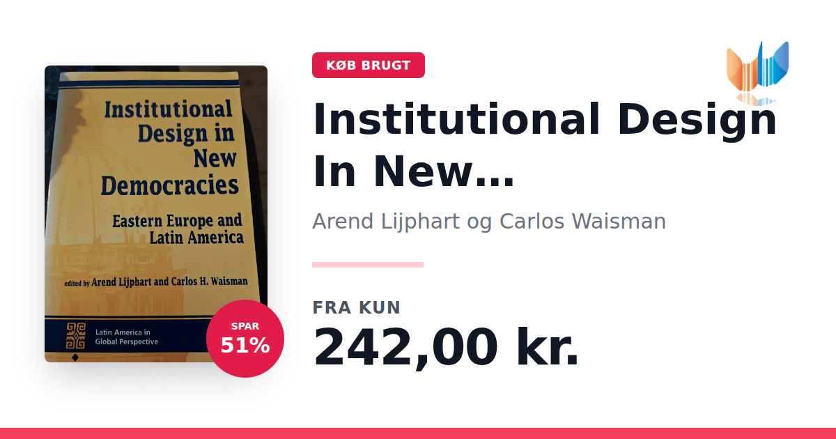 Lige nu kan du købe "Institutional Design In New Democracies" af Arend Lijphart og Carlos Waisman til kun 242,00 kr. Du sparer hele 51% af nyprisen! Bogen du ser her er brugt, og i god stand. Vi har i øjeblikket kun et enkelt eksemplar til salg af "Institutional Design In New Democracies", så slå til mens du kan!