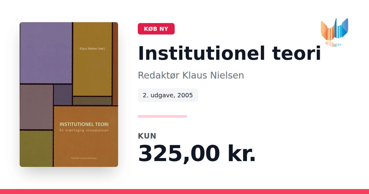 Lige nu kan du købe "Institutionel teori" af Redaktør Klaus Nielsen til kun 325,00 kr. Bogen du ser her er ny, og kan købe gennem vores partner Plusbog.