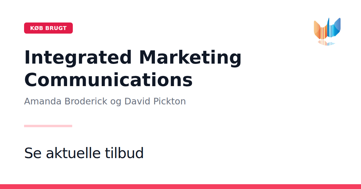 I anden udgave af Integrated Marketing Communications præsenterer Amanda Broderick og David Pickton en samlet fremstilling af marketingkommunikationens kerneelementer. Bogen introducerer tre modeller - IMC Process-modellen, RABOSTIC Planning-modellen og IMC Mix-modellen - som hver visualiseres grafisk for at skabe et klart overblik ved begyndelsen af hvert afsnit. Den europæiske tilgang sikrer en dybdegående gennemgang af alle elementer i marketingkommunikationsmixet, fra internetmarketing og direct marketing til image- og brandstyring, internationale kommunikationsstrategier og etiske problemstillinger. Hvert kapitel understøttes af virkelighedsnære cases fra forskellige sektorer og aktuelle eksempler på kommunikationsstrategier under forandring. Bogen rummer gennemgående pædagogiske værktøjer som læringsmål, kapitelsammendrag, selvtest og diskussionsspørgsmål samt både marginale og afsluttende glossarer. Dertil kommer tekstbokse som Need to Know, Food for Thoughts og Warnings, der skærper fokus og fremmer kritisk refleksion. Nyheder i denne udgave omfatter en omstrukturering af RABOSTIC Planning-modellen og en integreret case-tilgang med spørgsmål i starten af hvert kapitel, der guider læseren gennem planlægningsprocessens komplekse faser. Bogen udkommer som paperback og leveres med en medfølgende CD-ROM med yderligere cases, PowerPoint-slides og supplerende øvelser.