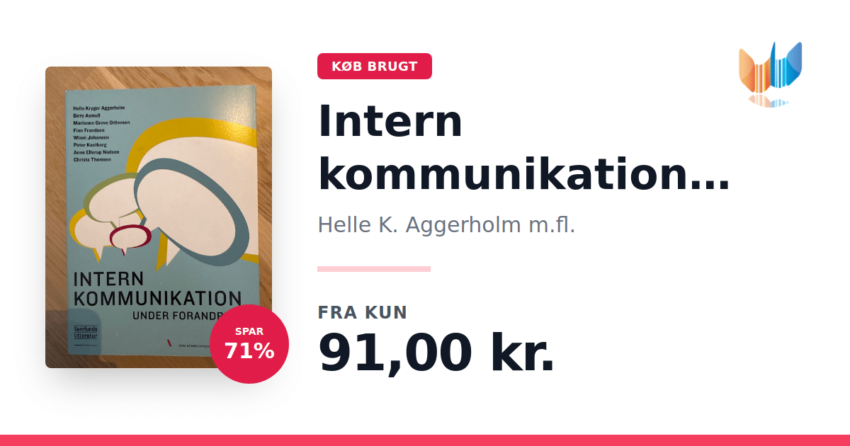 Lige nu kan du købe "Intern kommunikation under forandring" af Helle K. Aggerholm m.fl. til kun 91,00 kr. Du sparer hele 71% af nyprisen! Bogen du ser her er brugt, og i god stand. Vi har i øjeblikket kun et enkelt eksemplar til salg af "Intern kommunikation under forandring", så slå til mens du kan!