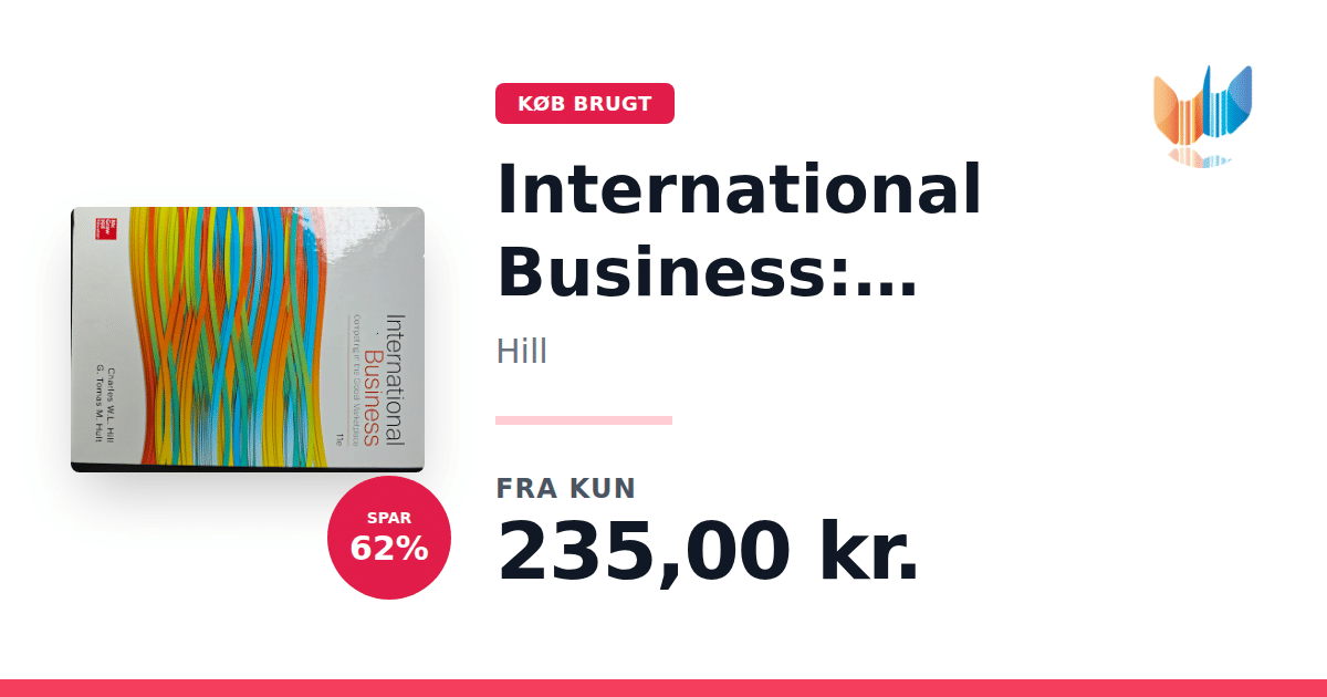Lige nu kan du købe "International Business: Competing in the Global Marketplace" af Hill til kun 235,00 kr. Du sparer hele 62% af nyprisen! Bogen du ser her er brugt, og i god stand. Vi har i øjeblikket kun et enkelt eksemplar til salg af "International Business: Competing in the Global Marketplace", så slå til mens du kan!