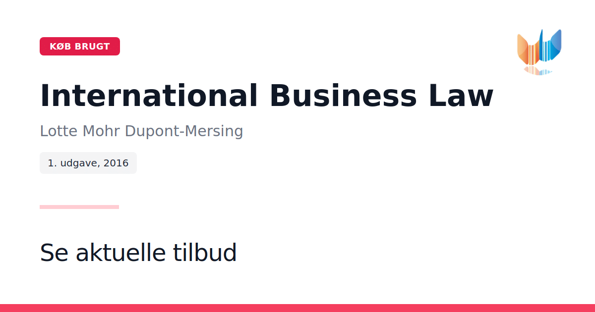 I International Business Law præsenterer forfatterne Bjarke Tinten, Lotte Mohr Dupont-Mersing og Trine Lyneborg Schaldemose en dybdegående gennemgang af de retlige rammer, der styrer handelsforbindelser på tværs af landegrænser. Bogen fokuserer på centrale emner som internationale kilder til ret, privat international ret og metoder til løsning af tvister, hvilket giver et solidt fundament for forståelsen af global handel. Med opdaterede kapitler om transportret og offentlig indkøbsret belyser værket de moderne udfordringer og muligheder i forbindelse med grænseoverskridende aftaler og leveringsforhold. Bogen henvender sig primært til studerende på PBA-programmer, særligt inden for international handel og marketing, men vil også være et værdifuldt redskab for andre med interesse i international handelsret.