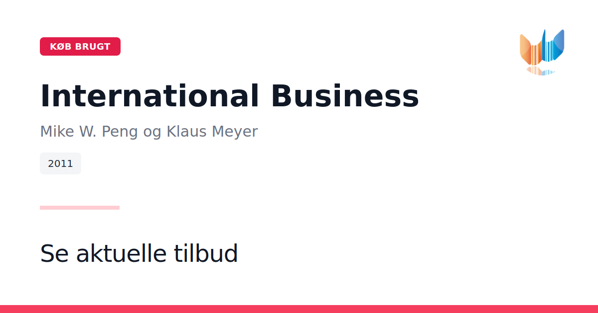 Mike W. Peng og Klaus Meyer trækker på direkte erfaring fra forskning og undervisning i Europa, Asien og Nordamerika. Det danner grundlaget for International Business, udgivet som paperback på Cengage Learning i 2011. Bogen rejser ét centralt spørgsmål: Hvad bestemmer virksomheders succes og fiasko på tværs af grænser? Gennem et institutionelt perspektiv og et ressourcebaseret perspektiv præsenteres nøglebegreberne med støtte i den nyeste videnskabelige forskning. International Business spænder fra de europæiske rødder til globale tendenser, og de 672 sider kombinerer historisk kontekst med aktuelle cases og analyser. Resultatet er en sammenhængende introduktion, der både engagerer studerende og praktikere. Bogen blev nomineret til CMI Management Book of the Year 2011/12 i e-bogskategorien.
