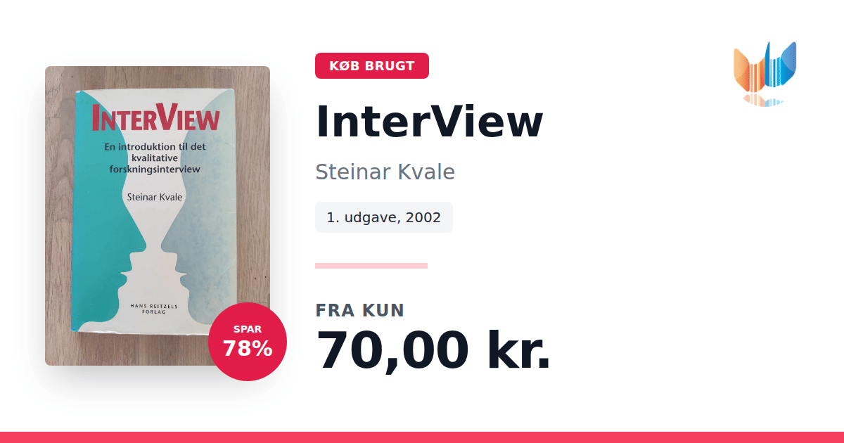 Interview, skrevet af Steinar Kvale, dykker ned i interviewets kunst og teori på en engageret og indsigtsfuld måde. Bogen udfolder de centrale metoder og teknikker, der er nødvendige for at føre både strukturerede og spontane samtaler med succes. Med 318 sider tilbyder denne paperback fra Gyldendal en solid og praktisk tilgang, der henvender sig til både nye interviewere og erfarne praktikere. Kvales skarpe analyser og letforståelige formidling gør Interview til et uundværligt redskab for alle, der ønsker at forbedre deres færdigheder inden for samtaleteknik.