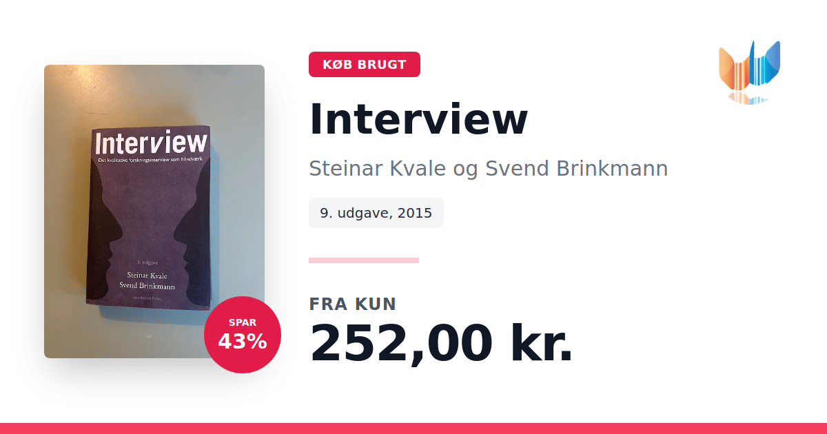 "Interview" af Steinar Kvale og Svend Brinkmann er en essentiel grundbog for studerende og forskere, der ønsker at mestre interviewets mange facetter. Bogen kombinerer en teoretisk forståelse med en praktisk tilgang, der tilsammen giver læseren en solid introduktion til interviewets udfordringer og muligheder. I denne tredje udgave, der udkom i 2015 hos Hans Reitzels Forlag, bliver du præsenteret for nye udviklingstendenser inden for kvalitativ interviewforskning. Med en klar og logisk opbygning bliver både de epistemologiske og etiske aspekter belyst, så du får redskaberne til at håndtere de mange former for spørgsmål og problemstillinger, der opstår i interviewprocessen. Bogens gennemarbejdede struktur og flydende sprog sikrer, at den forbliver en trofast følgesvend, uanset om du er nybegynder eller allerede arbejder med interviewteknikker. "Interview" udgør dermed ikke blot en teoretisk indføring, men også en praktisk guide til at udvikle dit håndværk og nå dine forskningsmål.