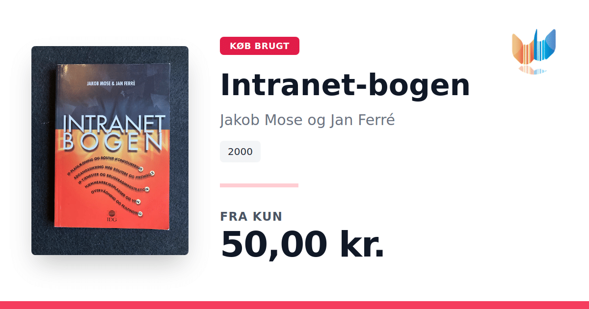 Lige nu kan du købe "Intranet-bogen" af Jakob Mose og Jan Ferré til kun 50,00 kr. Bogen du ser her er brugt, og i god stand. Vi har i øjeblikket kun et enkelt eksemplar til salg af "Intranet-bogen", så slå til mens du kan!