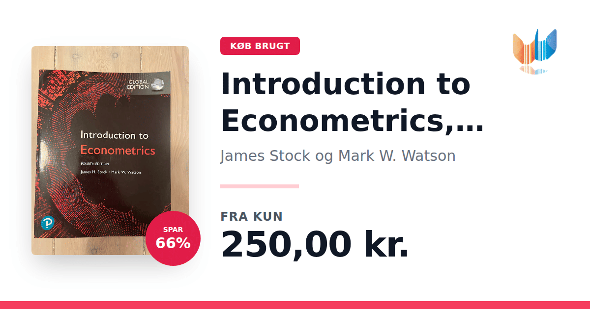 Lige nu kan du købe "Introduction to Econometrics, Global Edition" af James Stock og Mark W. Watson til kun 250,00 kr. Du sparer hele 66% af nyprisen! Bogen du ser her er brugt, og i perfekt stand. Vi har i øjeblikket kun et enkelt eksemplar til salg af "Introduction to Econometrics, Global Edition", så slå til mens du kan!