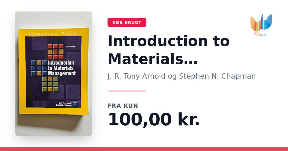 Introduction to Materials Management af J. R. Tony Arnold og Stephen N. Chapman er en grundlæggende lærebog fra 2004 på 468 sider, velegnet til studerende på erhvervsakademier, universiteter og tekniske programmer samt fagfolk i produktions- og lagerstyring. Med sin klare, ukomplicerede skrivestil introducerer den læseren til centrale emner i materialestyring. Bogen dækker fundamentet for supply chain management, produktionsplanlægning og -kontrol, indkøb samt fysisk distribution. Hvert kapitel bygger logisk videre på de tidligere, så både nybegyndere og erfarne praktikere får størst muligt udbytte. I denne udgave er flere nye emner tilføjet, herunder ERP-systemer, leverandørstyret lager, organisatoriske konsekvenser af forsyningskæder, forholdet mellem produktionstid og efterspørgselstid, avancerede metoder til lagerevaluering, performance-metrics, Lean-produktion og poke-yoke, Just-in-Time-produktion, nye kvalitetsstyringsværktøjer samt tilføjelse af FIFO, LIFO, gennemsnits- og standardomkostninger i inventarstyring. For at styrke indlæringen indeholder bogen marginikoner, der fremhæver nøglebegreber, ordlister med sidehenvisninger, eksempler og beregningsopgaver i teksten, overskuelige kapitelsammenfatninger, omfattende spørgsmål og opgaver samt henvisninger til cases i det tilhørende casebook.