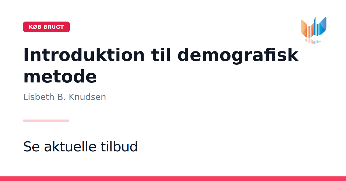 Gennemrevideret 3. udgave – Introduktion til demografisk metode giver et friskt indblik i de grundlæggende metoder og mål, som ligger til grund for forståelsen af Danmarks demografiske udvikling. I en tid, hvor pensionistårgange og den seneste tids indvandring løfter emner som fertilitet og mortalitet i den offentlige debat, er det afgørende at have kendskab til de statistiske beregninger bag tallene. Bogen præsenterer på en letforståelig måde, hvordan de centrale demografiske variable beregnes, og hvordan disse kan anvendes til at kaste lys over befolkningens udvikling. Ved at følge metoder og principper, der går igen i beregningerne, tilbydes læseren en systematisk tilgang til at forstå de bagvedliggende årsager til de ændringer, der påvirker samfundets demografiske struktur. Lisbeth B. Knudsen, professor i sociologi på Aalborg Universitet, formidler med indsigt de komplekse sammenhænge, der er essentielle for at analysere og fortolke Danmarks demografiske fremtid.