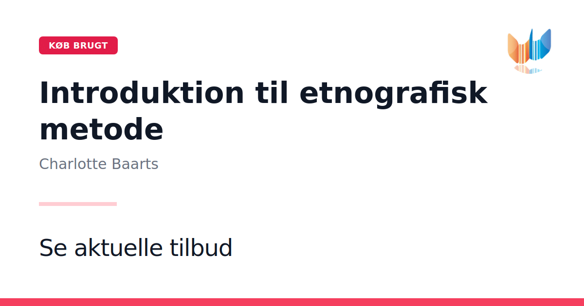 Introduktion til etnografisk metode giver et inspirerende indblik i, hvordan man gennem etnografiske tilgange kan undersøge kultur og menneskelig adfærd i konkrete sociale kontekster. I bogen demonstrerer Charlotte Baarts, hvordan metoder som feltarbejde og deltagerobservation anvendes i social- og sundhedsvidenskabelige undersøgelser, og hvordan disse metoder organiseres fra de allerførste spørgsmål til formidlingen af den etnografiske viden. Med udgangspunkt i eksempler fra forfatterens eget feltarbejde forklares processen med udarbejdelsen af feltnoter, analysen af etnografisk empiri og sammensætningen af den færdige etnografiske tekst. Bogen giver læseren en grundig forståelse for, hvordan etnografiske projekter udvikles, herunder hvordan etisk bevidsthed væves ind i den samlede undersøgelsesproces. Introduktion til etnografisk metode er både en praktisk vejledning og en teoretisk refleksion, der sætter fokus på de essentielle redskaber inden for etnografien.