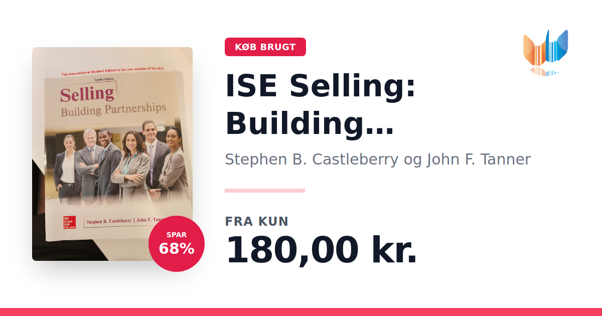 ISE Selling: Building Partnerships, 10. udgave af Stephen B. Castleberry og John F. Tanner, er en af de mest nyskabende lærebøger inden for salg. Den kombinerer unikke rollespil og mini-cases med skarpt fokus på den viden og de færdigheder, der driver stærke og varige partnerskaber mellem sælgere og kunder. Bogen lægger vægt på sælgerens evne til at være fleksibel og tilpasse strategier ud fra kundens behov, køberens sociale stil og øvrige relationelle faktorer. Afslutningsvis udforskes sælgeren som leder med fokus på grundig planlægning og vedvarende læring, som styrker både salgseffektivitet og karriereudvikling.