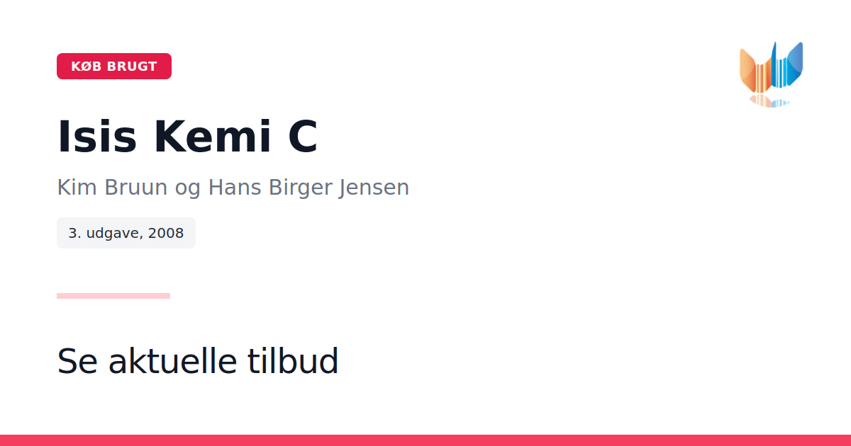 Isis Kemi C er en omhyggeligt udformet hardcover-udgave udgivet i 2008 af Systime. I dette tredje oplag står forfatterne Kim Bruun, Hans Birger Jensen, Karsten Ulrik Jensen og Søren Munthe bag en bog, der spænder over 184 sider og afspejler deres samlede erfaring og indsigt. Bogen præsenterer et gennemarbejdet indhold, hvor den systematiske opbygning og klare fremstilling understøtter læserens forståelse. Isis Kemi C vidner om forfatternes omhyggelige redaktionelle arbejde og ambitionen om at levere en præcis og struktureret ressource på dansk.