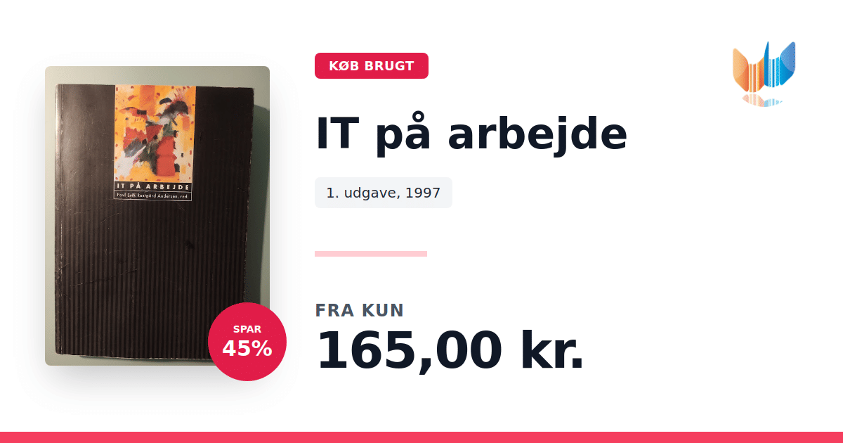 Lige nu kan du købe "IT på arbejde" til kun 165,00 kr. Du sparer hele 45% af nyprisen! Bogen du ser her er brugt, og i perfekt stand. Vi har i øjeblikket kun et enkelt eksemplar til salg af "IT på arbejde", så slå til mens du kan!