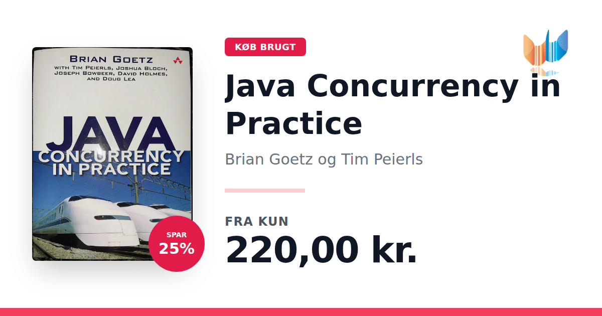 Lige nu kan du købe "Java Concurrency in Practice" af Brian Goetz og Tim Peierls til kun 220,00 kr. Du sparer hele 25% af nyprisen! Bogen du ser her er brugt, og i perfekt stand. Vi har i øjeblikket kun et enkelt eksemplar til salg af "Java Concurrency in Practice", så slå til mens du kan!