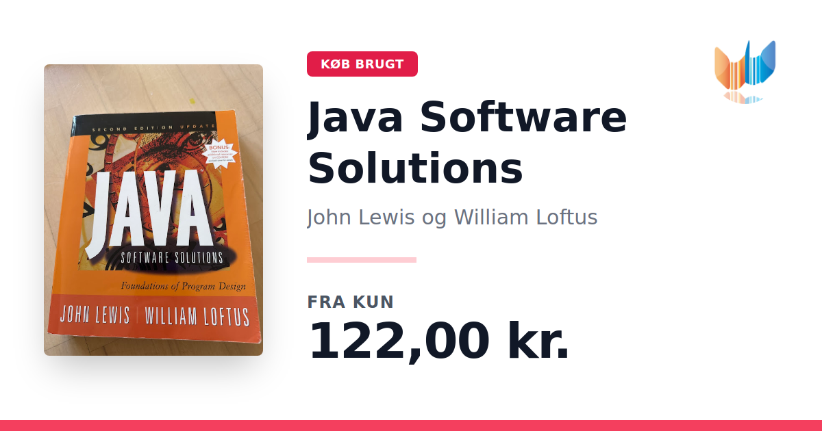 Lige nu kan du købe "Java Software Solutions" af John Lewis og William Loftus til kun 122,00 kr. Bogen du ser her er brugt, og i god stand. Vi har i øjeblikket kun et enkelt eksemplar til salg af "Java Software Solutions", så slå til mens du kan!