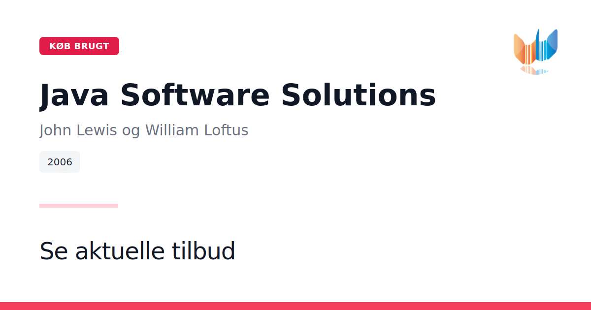Java Software Solutions: Foundations of Program Design af John Lewis og William Loftus har i næsten ti år været den foretrukne grundbog til introduktion til programmering med Java. Bogen fra 2006 er designet til at give nybegyndere et stærkt afsæt i både teori og praksis - fra de første kodeeksempler til komplekse objektorienterede programmer. Med fokus på struktureret problemløsning og gennemarbejdet design fører teksten læseren trin for trin gennem centrale principper som klasser, arv, interfaces og undtagelseshåndtering. Hvert kapitel indledes med klare mål og afsluttes med øvelser, der udfordrer både analytiske evner og kreativ tænkning. Bogens karakteristika er integrationen af en bred vifte af realistiske eksempler - små kodefragmenter, der illustrerer specifikke koncepter, og større projekter, hvor man samler trådene til fuldt funktionsdygtige applikationer. Denne vekselvirkning mellem teori og praksis gør materialet levende og umiddelbart anvendeligt. Uanset om du er studerende, kursist eller selvlært udvikler, tilbyder Java Software Solutions de nødvendige redskaber til at opbygge en solid forståelse af Java-programmering samt de designmønstre, der sikrer vedligeholdelig og genbrugelig kode.