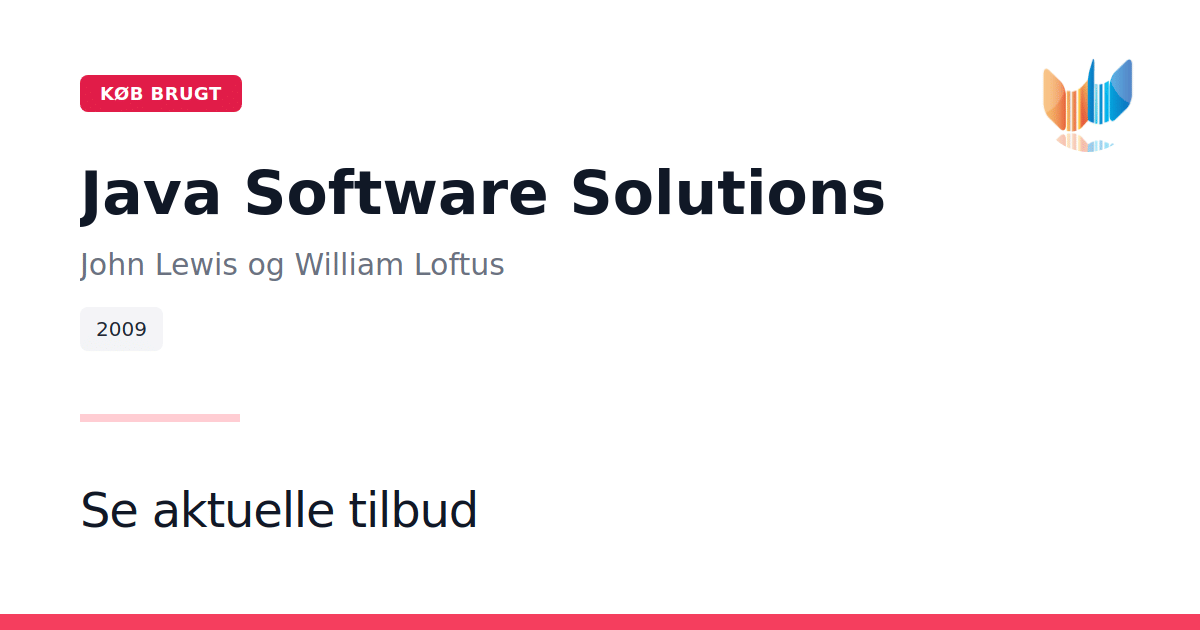 Java Software Solutions: Foundations of Program Design er en grundlæggende indføring i Java-programmering, der bygger bro mellem teori og praksis. Bogen anvender både små og større, virkelighedsnære eksempler til at illustrere objektorienterede principper og styrke læserens evne til at designe veldisponerede programmer. Forfatterne John Lewis og William Loftus lægger vægt på systematisk problemløsning og softwaredesign. Gennemnes tekstnære programmeringsprojekter får studerende lejlighed til at afprøve nye teknikker i praksis og konsolidere deres forståelse af kernebegreberne. Som supplement tilbydes revolutionerende videoressourcer præsenteret af John Lewis, der visuelt gennemgår de mest udfordrende emner. Desuden præsenteres vignetter om faktiske softwarefejl for at underbygge vigtigheden af god arkitektur, mens træningsopgaver efter hvert afsnit giver mulighed for løbende selvkontrol.
