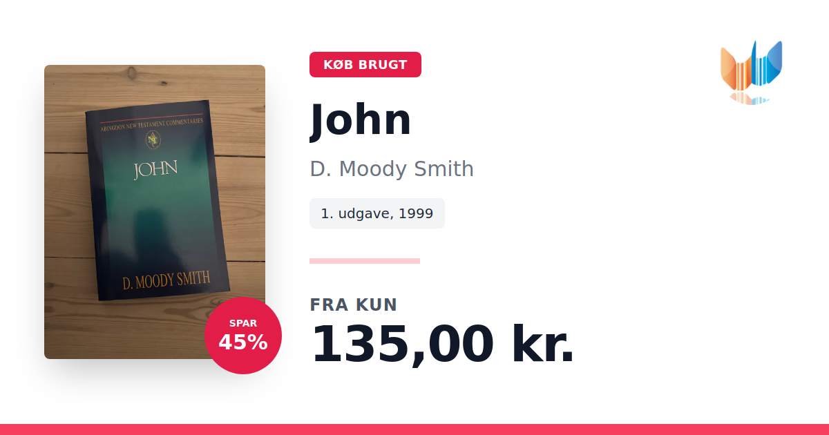 Lige nu kan du købe "John" af D. Moody Smith til kun 135,00 kr. Du sparer hele 45% af nyprisen! Bogen du ser her er brugt, og i perfekt stand. Vi har i øjeblikket kun et enkelt eksemplar til salg af "John", så slå til mens du kan!