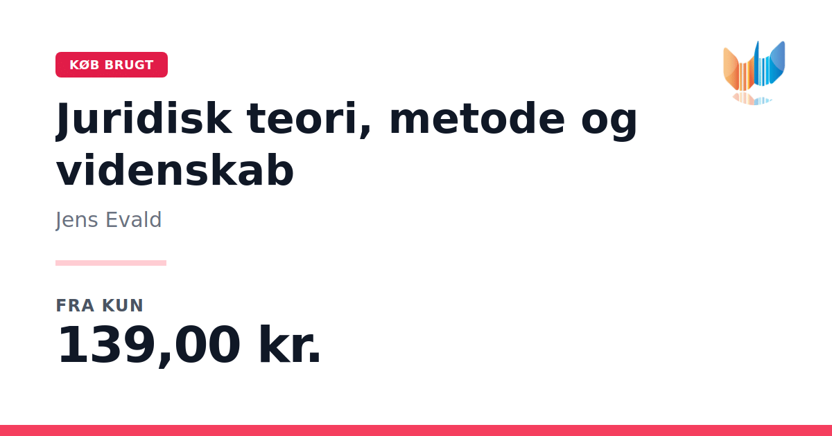 Lige nu kan du købe "Juridisk teori, metode og videnskab" af Jens Evald til kun 139,00 kr. Du sparer hele 38% af nyprisen! Bogen du ser her er brugt, og i god stand. Vi har i øjeblikket kun et enkelt eksemplar til salg af "Juridisk teori, metode og videnskab", så slå til mens du kan!