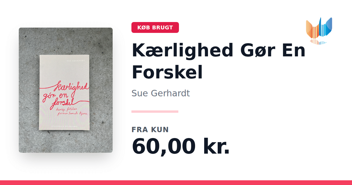 Lige nu kan du købe "Kærlighed Gør En Forskel" af Sue Gerhardt til kun 60,00 kr. Bogen du ser her er brugt, og i perfekt stand. Vi har i øjeblikket 2 eksemplarer til salg af "Kærlighed gør en forskel", så husk at se de forskellige udgaver.