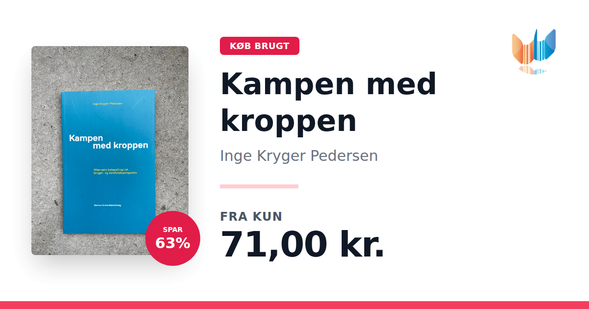 Lige nu kan du købe "Kampen med kroppen" af Inge Kryger Pedersen til kun 71,00 kr. Du sparer hele 63% af nyprisen! Bogen du ser her er brugt, og i perfekt stand. Vi har i øjeblikket kun et enkelt eksemplar til salg af "Kampen med kroppen", så slå til mens du kan!